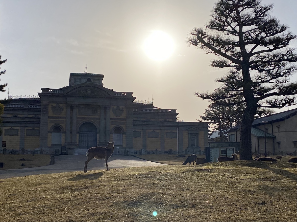 朝の温泉に浸かり、早朝の奈良公園へ散歩に出かけます。