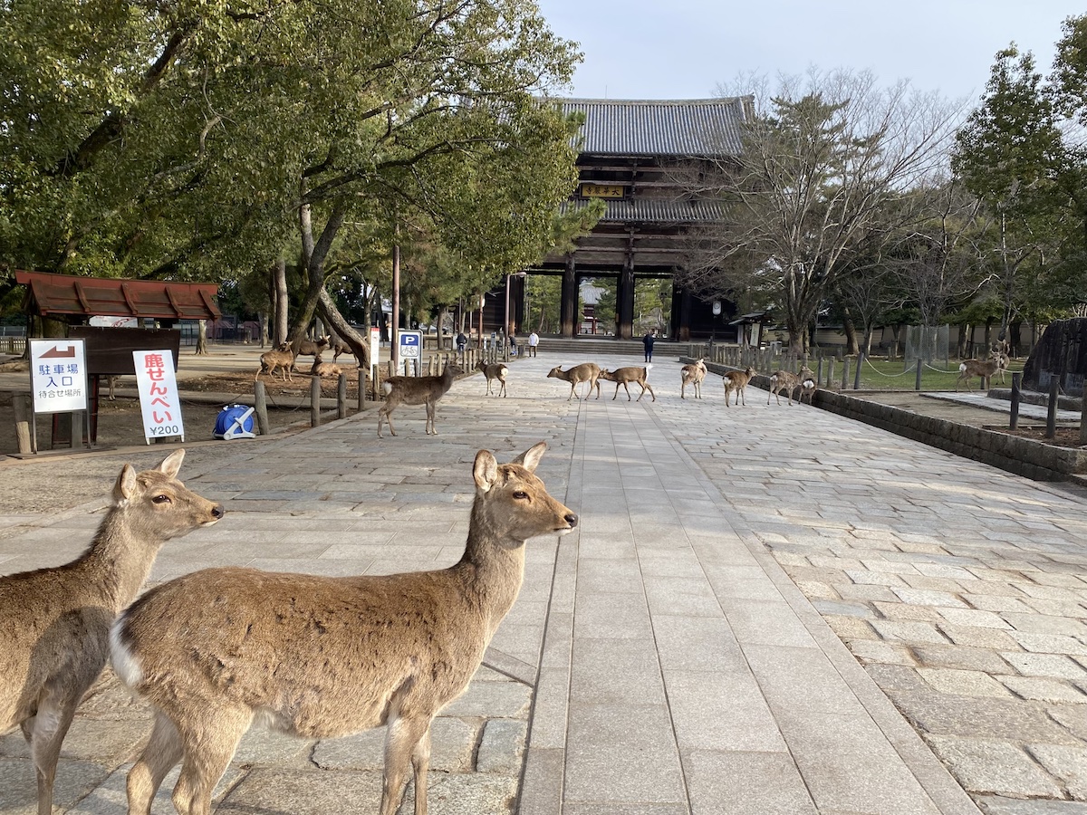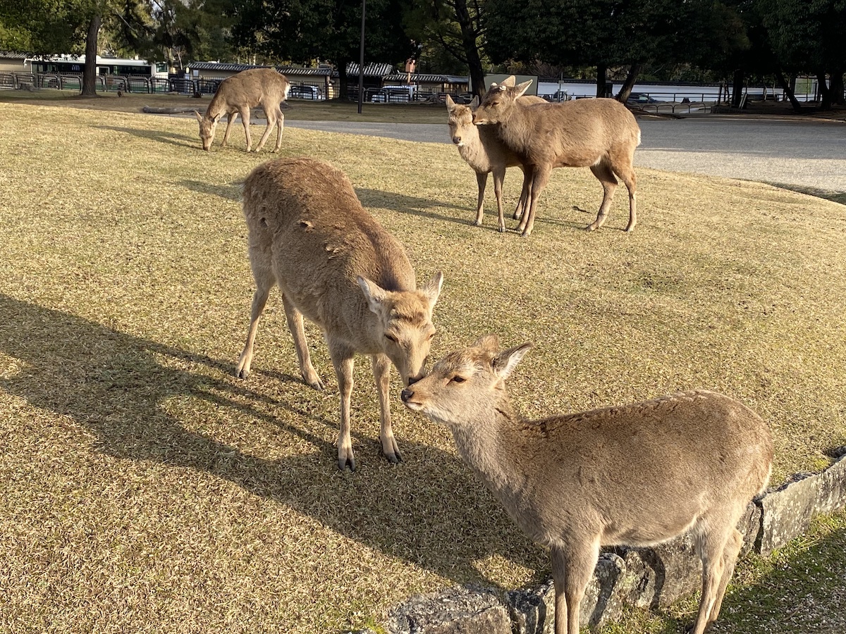 奈良公園の鹿は一応「野生」の扱いになるそうで、野生動物とここまで距離が近い空間は世界でも稀なこと。