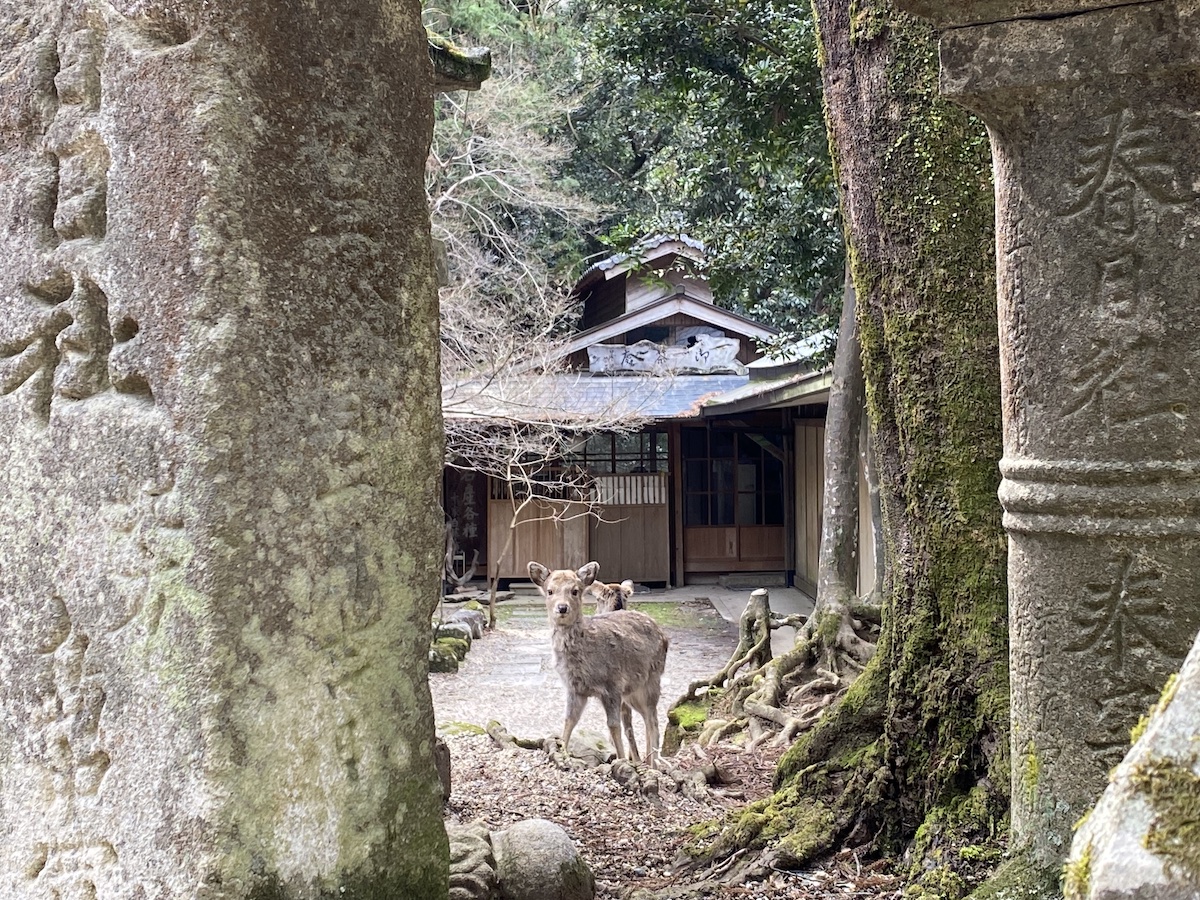 石灯籠とかわいい子鹿。ずーっとこちらに注目していて可愛かった。
