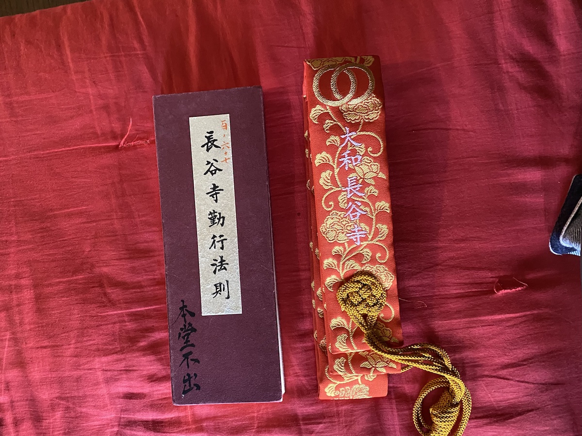 朝勤行で唱えるお経と、首からかける装飾品?を拝借。