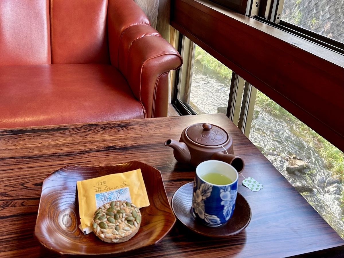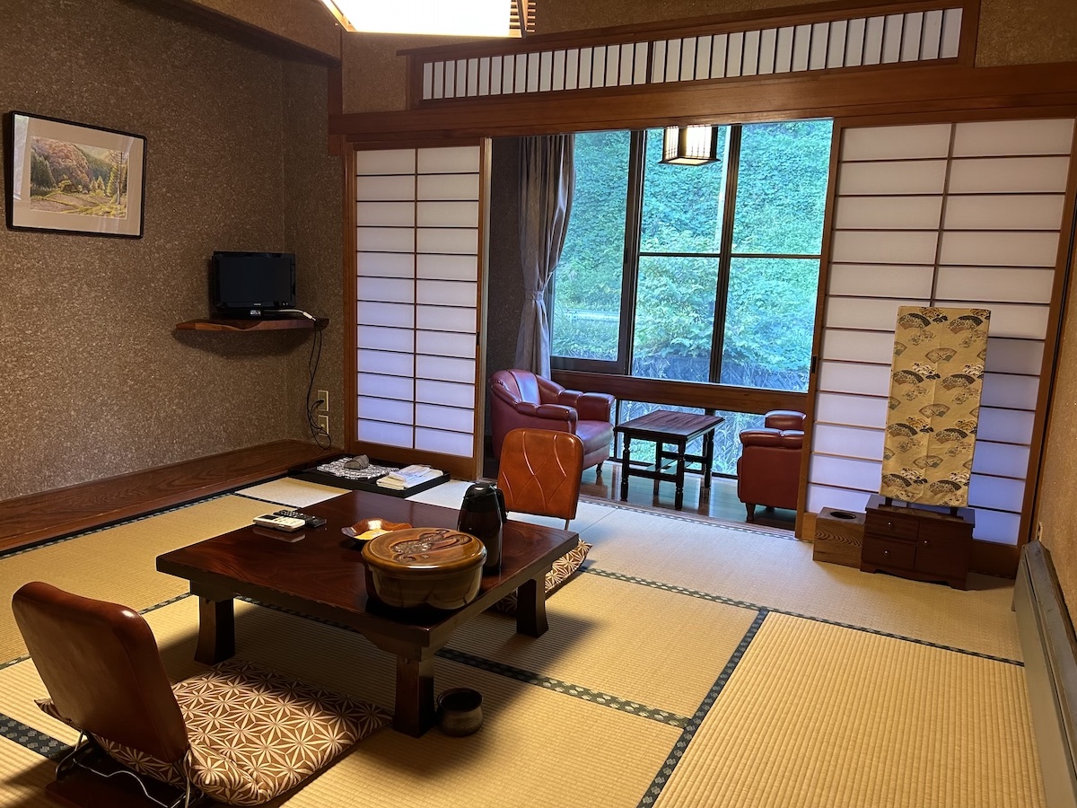 滞在中、10回ほど出たり入ったりを繰り返し、あったまったら外を散策、またあったまったら部屋の畳の上でごろん、さらにあったまったらせせらぎの音を聞きながら涼む。