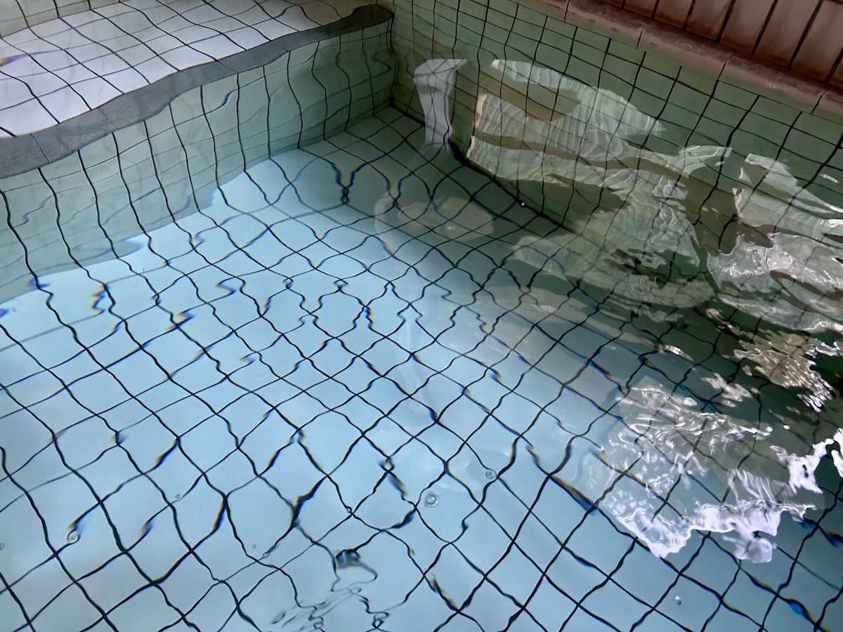 体が温まり深い眠りを誘うという湯は毎分700ℓも湧出し、55℃の源泉を冷ますため少しずつ注ぎ入れているそう。