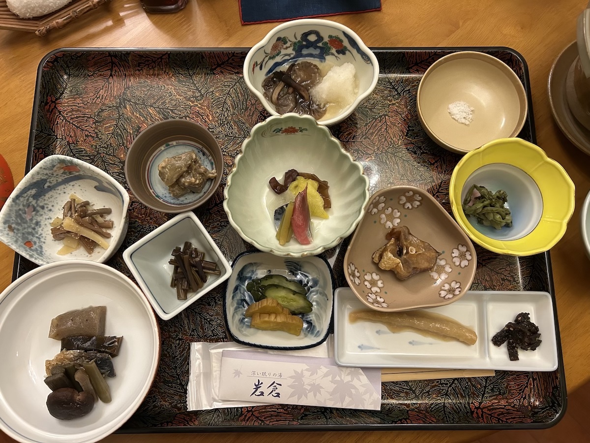 東北のイメージどおりの山菜と魚が豊富なお膳。量もたっぷり。一つひとつが丁寧に作られていて、美味しいこと美味しいこと!