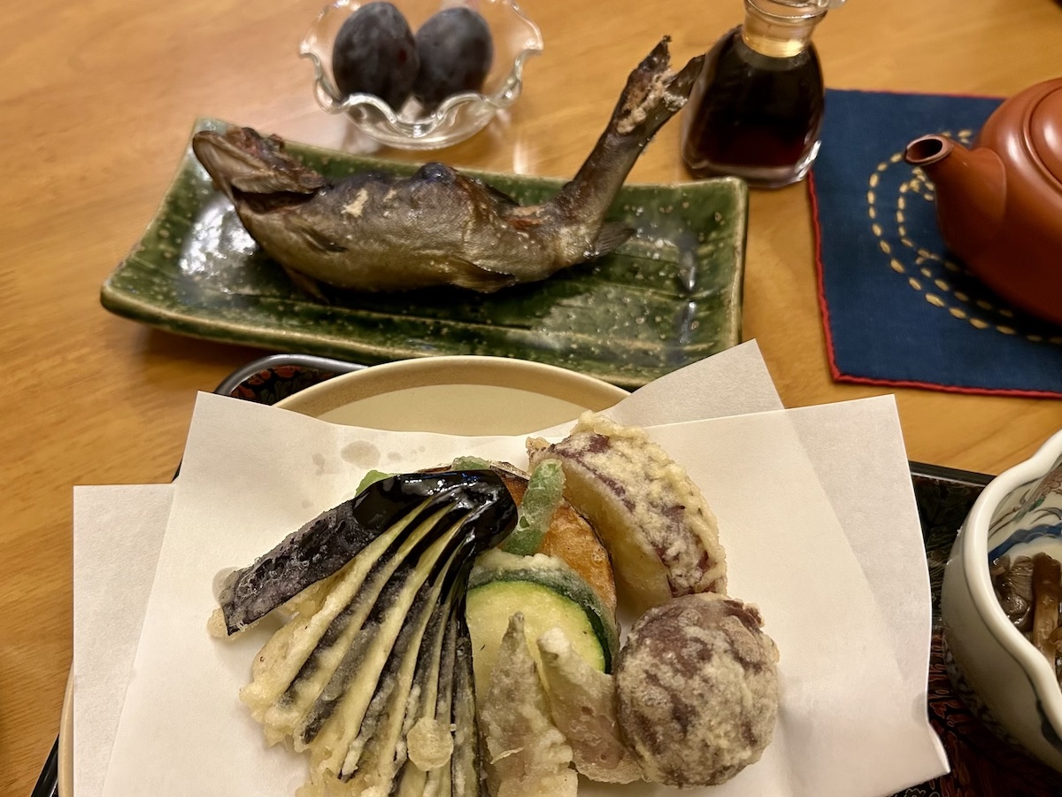 天ぷらは季節のお野菜(栗が特に美味しかった)。岩魚の塩焼きも絶品でした。